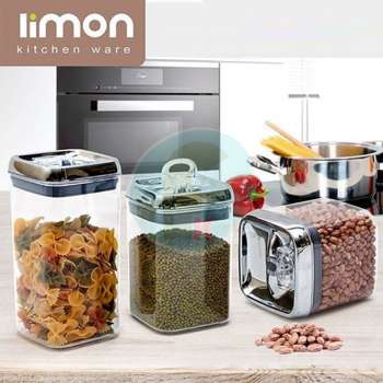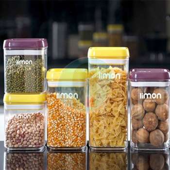 بانکه چهارگوش لیمون در سه اندازه متفاوت برای نگهداری انواع حبوبات، ماکارونی، قهوه و غیره می تواند استفاده شود.