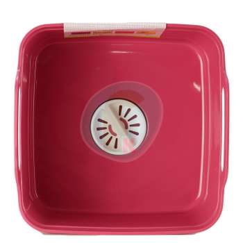 لگن سینک با درپوش تخلیه در سه رنگ متنوع ارائه شده و دارای ابعاد ۳۰*۳۰*۱۷٫۵ سانتیمتر می باشد. می توانید این لگن ها را برای استفاده بهتر در آشپزخانه و همچنین برای هدیه دادن به یک خانم خانه دار با سلیقه استفاده کنید. این لگن ها از پلاستیک مرغوب ساخته شده و کاملا محکم و مقاوم هستند. این لگن ها با ۴ پایه ی کوتاهی که دارند از سطح سینک بالا آمده می توانند به خوبی کارهای شستشوی شما را انجام دهند. لگن های درپوش دار مناسب ترین گزینه برای شستشوی میوه ها و سبزیجات و همچنین سایر مواد خوراکی یا ظروف شماست. در صورتی که درپوش های سینک ظرفشویی تان به خوبی محکم نمی شود می توانید با خیال راحت این لگن ها را پر از آب کرده و از آن استفاده کنید. سپس در پایان کارتان درپوش را برداشته و آب لگن را خالی نمایید. به این صورت آب به فضای بین سینک و لگن رفته و به خاطر وجود پایه ها حتی بازگشت هم نمی کند.