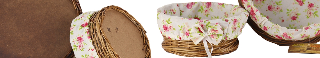 این سبد دارای روکشی پارچه ای با طرح گل سرخ است و برای سرو انواع نان و سبزی بسیار مناسب اند. روکش پارچه ای قابلیت جدا شدن و شستشو دارد و به راحتی میتوان آنرا را نظافت کرد.