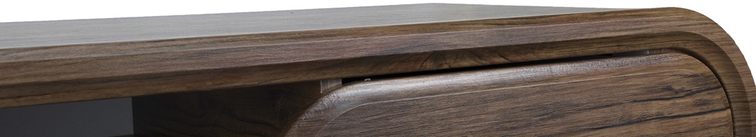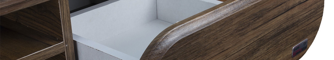 اگر قصد تهیه میز تلویزیون با ابعاد استاندارد دارید، میز تلویزیون مدل رادیوئی عینکی یکی از گزینههایتان است. این مدل قهوهای رنگ است و به آسانی میتوانید آن را با دکوراسیون خانهتان ست کنید. یکی از ویژگیهای این مدل استفاده از پایه است. ارتفاع این میز به صورتی طراحی شده تا برای افادی که قصد دارند از میز فاصله داشته باشند، امکان دید تلویزیون وجود داشته باشد. در وسط این میز یک باکس برای قرار دادن دستگاه پخش یا کنسول بازی طراحیشده است. برای اتصال آسانتر این دستگاهها به پریز، دو حفره برای عبور سیم، تعبیهشده است.جنس غالب استفاده شده برای این میز MDF است. استفاده از این جنس باعث شده تا ماندگاری این میز افزایش پیدا کند. این مدل به 2 کشو مجهز شده است و این دو فضای کافی برای قرار دادن لوازم جانبی مانند ریموت، باتری، عینک سهبعدی را به شما میدهد. کشوهای استفاده شده در این میز ریلی است و به آسانی میتوانید از آن استفاده کنید. در میز تلویزیون مدل رادیویی عینکی برند حدیث، برای زیبایی محصول و یک دست بودن نمای ظاهری از قفل آهنربایی (مگنتی) برای کشوها استفاده شده است؛ این ویژگی باعث شده تا درب کشوها بدون دستگیره، با فشار دست، به راحتی باز و بسته شوند. در قسمت کشو این محصول، جهت باز و بسته شدن، از ریل دو زمانه با کیفیت مرغوب استفاده شده است.
