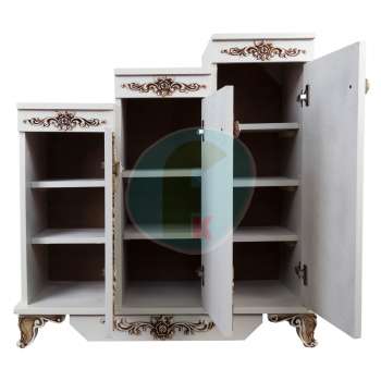 اگر راهروی کوچکی دارید از جاکفشی های رنگ روشن استفاده کنید جاکفشی سه پله مدل عروس بسیار جا دار بوده و شما به راحتی میتوانید تمام کفش های خود را در آن قرار دهید. این جاکفشی زیبا شامل سه پله در اندازه های مختلف می باشد که هر کدام هم دارای طبقات کافی برای کفش های شما می باشد. طول این محصول87 سانتی متر و عرض آن 33 سانتی متر است که با توجه به حجم کوچک آن فضای کمی را در راهروی شما اشغال میکند. ارتفاع پله کوچک آن 73 سانتی متر است و پله متوسط آن 83 سانتی متر و ارتفاع پله بزرگ آن93 سانتی متر است. جنس غالب این محصول از نوپان درجه 1 است و جنس روکش آن تمام رنگی است.